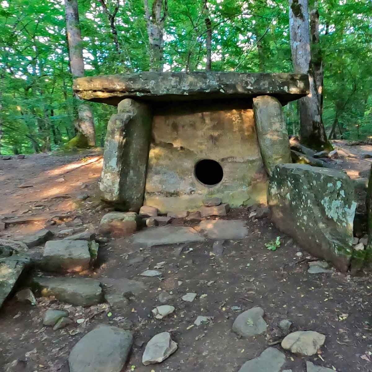Деревня дольменов — один из самых известных мегалитических комплексов Пшады, расположенный в лесной долине Краснодарского края. В одном месте сохранилось восемь дольменов разной степени целостности, что делает локацию уникальной и привлекает тысячи туристов. По официальной версии истории, эти сооружения относятся к эпохе бронзового века, но их истинное предназначение остаётся загадкой.