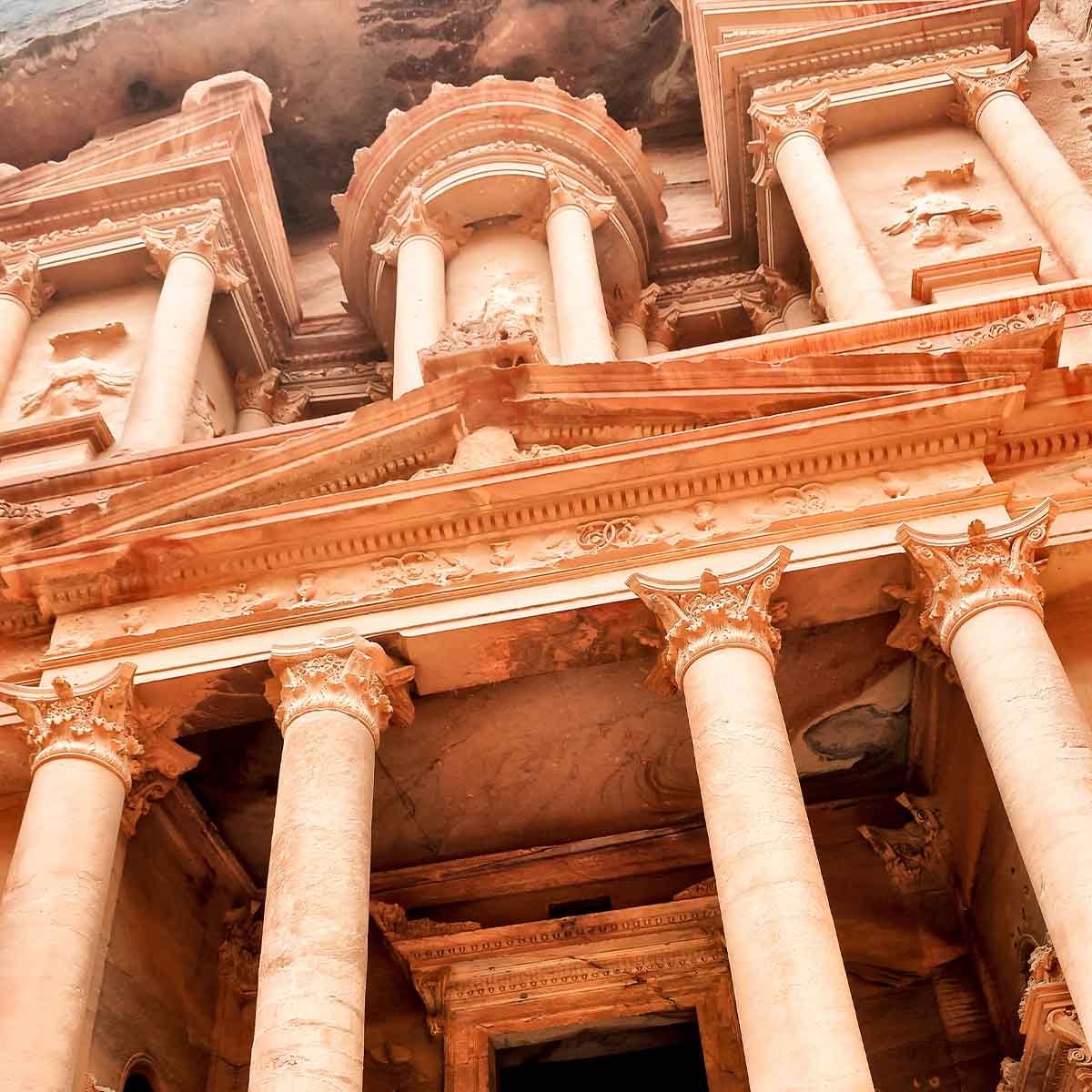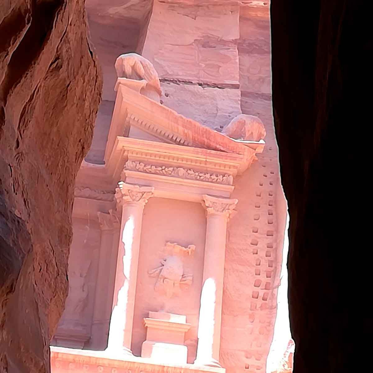 В этой публикации речь идёт о «Сокровищнице» Эль-Хазне — одном из самых известных сооружений древнего города Петра в Иордании. Фасад монумента достигает примерно 39 метров в высоту и около 25 метров в ширину. Всё это было не построено в привычном смысле, а вырублено прямо в массиве песчаной скалы.