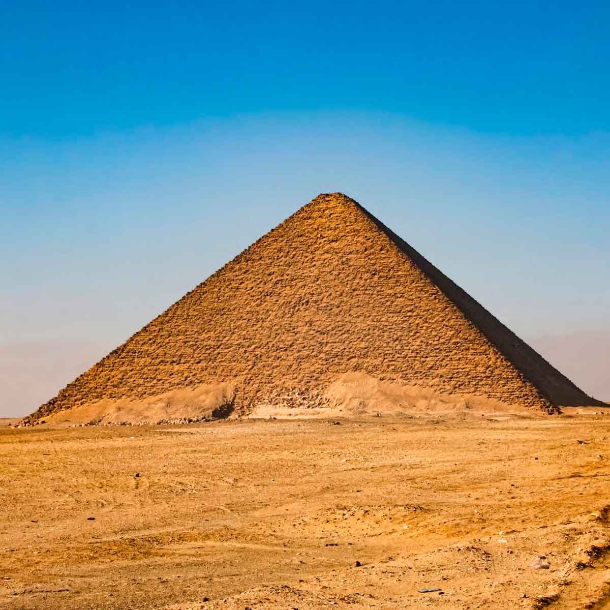 В некрополе Дахшур, к югу от Каира, возвышается Красная пирамида — третья по величине в Египте после пирамид Хеопса и Хефрена. Ее высота сегодня составляет около 104 метров, а основание достигает 220 метров в длину. Первоначально сооружение было облицовано белым турским известняком, но облицовка почти полностью утрачена в Средневековье, когда ее активно разбирали для строительства Каира. Современное название связано с красноватым оттенком известняка основной кладки. Пирамида заметно выделяется на фоне пустынного пейзажа и до сих пор сохраняет ореол загадочности.
