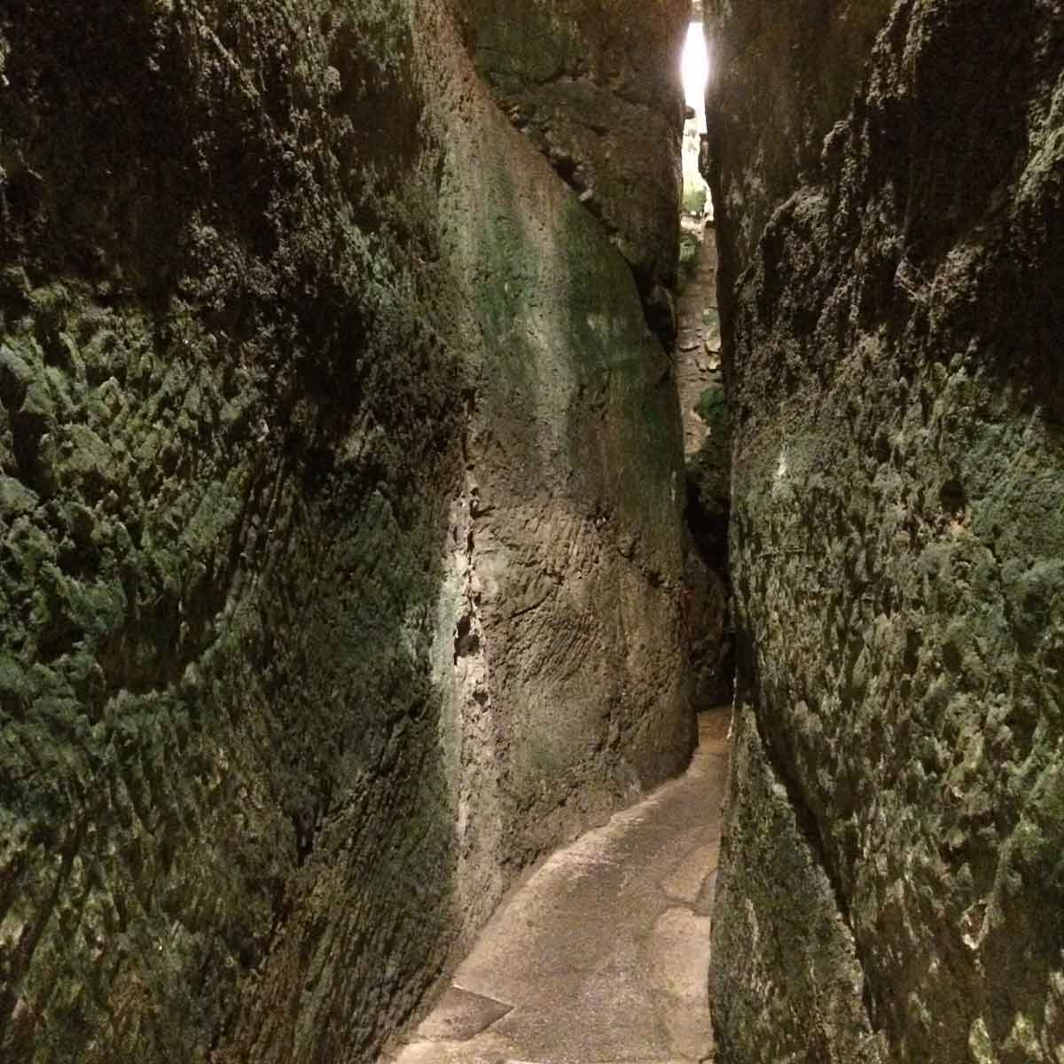 Ещё один по-настоящему примечательный фрагмент — это узкий скальный проход, который словно оживает на фотографии. Он сразу вызывает ассоциации с величественным каньоном Сик в Иордании, хотя здесь мы имеем дело скорее с иллюзией, чем с прямым сходством. Но несомненный факт остаётся: этот коридор слишком мал, чтобы быть естественным ущельем, и перед нами явно рукотворное сооружение.